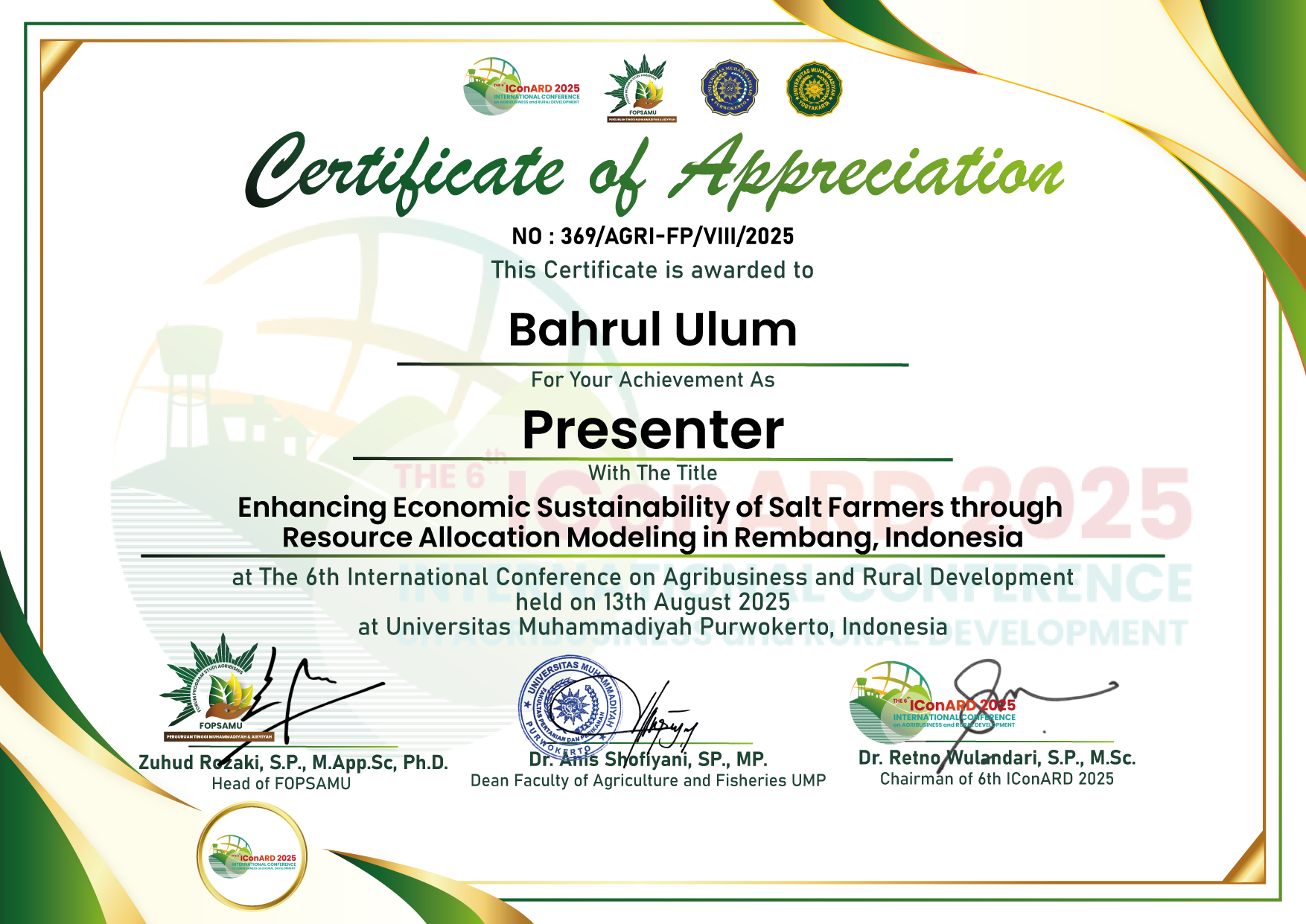 ULUM, BAHRUL Sertifikat International Conference IConARD 2025. [Teaching Resource] (Unpublished)
